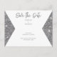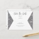 Silver Glitter image and White Envelope Style. Wedding Save the Date. Back with Bride and Groom last names as well as the text Wedding. Website. Modern Font.