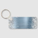Silver Glitter Light Blue Foil Fancy Monogram Key Ring