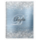 Silver Glitter Light Blue Metallic Fancy Monogram Notebook