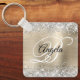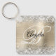 Silver Glitter Light Gold Foil Fancy Monogram Key Ring