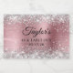 The girly glam background features a faux sparkly silver glitter against a faux light pink brushed metal foil.