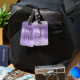 Create your own faux sparkly silver glitter and light amethyst purple foil bag tag.