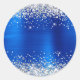 Silver Glitter Metallic Royal Blue Blank Classic Round Sticker