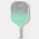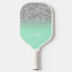 Silver Glitter Mint Green Ombre Modern Script Pickleball Paddle