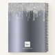A faux silver metallic looking background with elegant faux silver glitter drips, paint dripping look. Personalise and add a name, monogram letter and a title. The name is written in white with a large modern hand lettered style script with swashes. Perfect for school, work or as a your secret diary.