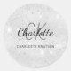 A faux silver looking background. Decorated with faux glitter. Personalise and add your first name, monogram initials and full name.