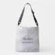 A modern faux silver metallic looking background. Decorated with faux glitter dust. Personalise and add your first name, monogram initials and full name. The name is written with a hand lettered style script.