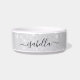 This is a heavy, durable bowl decorated with Tibbies of many colors, the perfect size for hungry/thirsty Tibs. The design is interesting and printing clear.