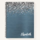 Silver Glitter Navy Blue Brushed Metal Monogram Notebook