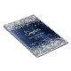 Girly faux sparkly silver glitter on the top and bottom edge, over a faux dark blue and navy brushed metal style shiny foil.