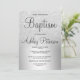 Silver glitter ombre metallic foil baptism invitation