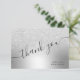 A chic and luxurious silver glitter ombre metallic foil design with elegant calligraphy typography for a thank you .