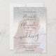 Grey silver glitter ombre blush script chic wedding with an elegant silver sparkles glitter ombre gradient on an editable pastel blush pink with an elegant and modern script calligraphy.Add your couple photo.