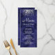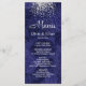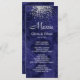 This elegant and modern menu has a splash of silver glitter on a rich royal blue background of roses. A beautiful menu to add class and distinction to any wedding. You can click the personalise button to add your own menu. You can also change the font style and colour or add your own special message. Also available are matching napkins, place cards and table number cards.