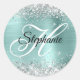 Silver Glitter Pale Turquoise Foil Fancy Monogram Classic Round Sticker