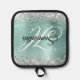 Silver Glitter Pale Turquoise Foil Fancy Monogram Pot Holder