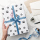 Silver Glitter Paw Prints Pattern Wrapping Paper