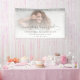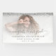 Silver Glitter Photo Script 2024 Graduation. A faux glitter border is at the top and congrats to our Grad is in an elegant script with swashes. Easily personalise the text to your own requirements, and replace the sample image with your own.