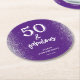 Silver Glitter Purple 50th Birthday Party Round Paper Coaster