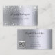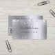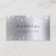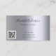 An elegant and glamourous business card on a faux silver background decorated with faux silver glitter dust on the front. Elegant black hand lettered style script. Personalise and add Your name, title, and contact info. Add your own QR code to your website.