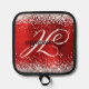 Silver Glitter Red Foil Fancy Monogram Pot Holder