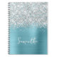 Silver Glitter Robin Egg Blue Glam Script Name Notebook