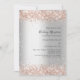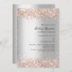 A faux silver looking background. Decorated with rose gold faux glitter. Personalise and add your names and reception details.