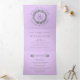 Vintage silver glitter rose wreath lavender tri-fold wedding invitation. This elegant modern design displays a vintage silver wreath with rose flowers and leaves, your names and wedding date on purple background on the cover. The inside panels include the same wreath and the details of your wedding while the outside back panel feature a photo of the couple.