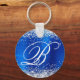 Silver Glitter Royal Blue Foil Fancy Monogram Key Ring