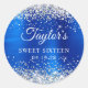 Silver Glitter Royal Blue Foil Sweet Sixteen Classic Round Sticker