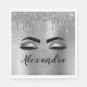 Silver Faux Foil Metallic Sparkle Glitter Brushed Metal Monogram Name and Initial Eyelashes (Lashes), Eyelash Extensions and Eyes Paper Napkins. The design makes the perfect sweet 16 birthday, wedding, bridal shower, anniversary, baby shower or bachelorette party gift for someone looking for a trendy cool style.