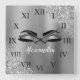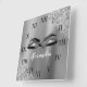 Silver Glitter Sparkle Eyelashes Monogram Name Square Wall Clock