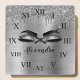 Silver Glitter Sparkle Eyelashes Monogram Name Square Wall Clock