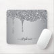Glam Silver Glitter Sparkle Hand Lettered Name Custom Mousepad.