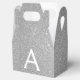 Silver Faux Glitter and Sparkle Elegant Gift Favour Box. This Gift Box can be customised to include your initial and first name and makes a great birthday, bachelorette party, bridal shower or baby shower gift box.