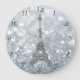 Silver Glitter Sparkle Paris Eiffel Tower Glam Large Clock