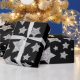 Silver glitter sparkles Stars pattern black Wrapping Paper. Cool, fun, elegant and unique X-mas Christmas Winter New Year festive gift wrap for her.