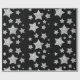 Silver glitter sparkles Stars pattern black Wrapping Paper