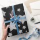 Silver glitter sparkles Stars pattern black Wrapping Paper