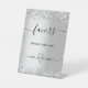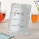Faux silver looking background, decorated with faux silver glitter sparkles. With the text: Favours. Please take one. Mr and Mrs with a heart