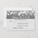 silver grey wedding RSVP card with hanging string lights and faux glitter shimmer texture background (not actual glitter).