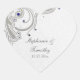 This stylish elegant heart shaped wedding sticker has a silver glitter flourish swirl design at the top left. There are jewel embellishments that are navy blue coloured. In the middle, you can easily customise the names of the bride and groom along with the date of your wedding ceremony. PLEASE NOTE, the jewels are FAUX, not a real embellishment, they are just part of the design. This trendy sticker is part of a matching wedding invitation set that is available through my shop.