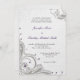 This stylish elegant wedding invitation has a silver glitter flourish swirl design at the bottom left and top right. There are jewel embellishments that are purple coloured. In the middle, you can easily customise your wedding ceremony information. PLEASE NOTE, the jewels are FAUX, not a real embellishment, they are just part of the design. This trendy invite would work great for a winter wedding.