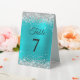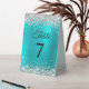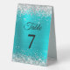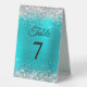 Silver Glitter Turquoise Blue Foil Table Number