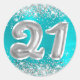 Silver Glitter Turquoise Blue Number 21 Birthday Classic Round Sticker
