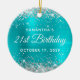Silver Glitter Turquoise Foil 21st Birthday Ceramic Tree Decoration