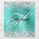 Silver Glitter Turquoise Foil Fancy Monogram Wine Label