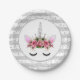Silver Glitter Unicorn Princess Paper Plate