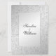 Silver glitter design for your wedding invitations. Put the first names of the Bride and Groom on one side giving your invitations a less formal feel. On the other side the pertinent wedding information adds a classic flair. You can easily change the text.