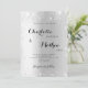 A modern, elegant and minimalist wedding invitation. Faux silver looking background decorated with faux glitter. Personalise and add your names and details. Black coloured letters.